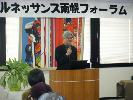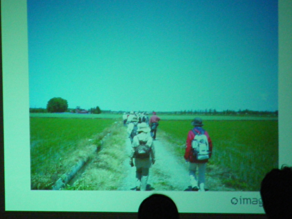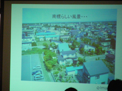 ![]() 南幌らしい風景とは・・・ :田園が広がり、高く広がる空・・・ パネリストの酒井裕司氏より、プロジェクターを通じて〜南幌らしい風景とは?〜と投げかけて頂いきまして、ディスカッションが始まりました。 |