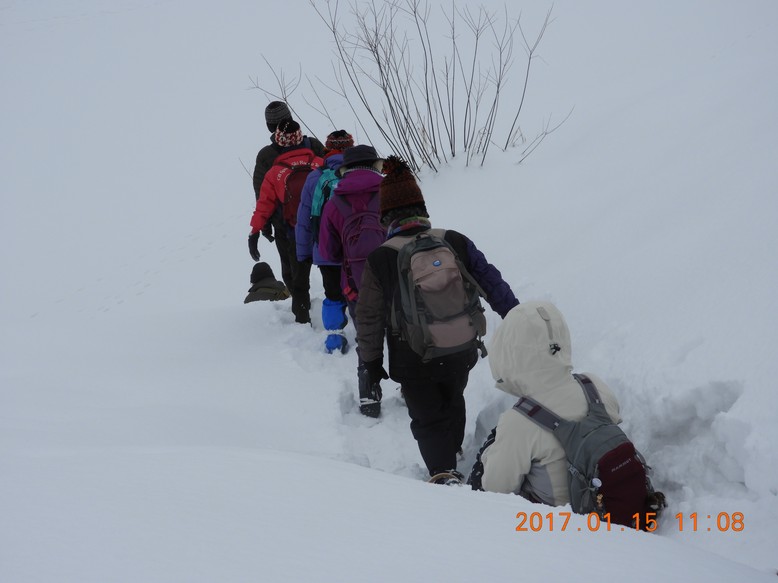 吟行を取り入れた月例フットパスをははじめて行いました。14名の参加者達はかんじきで歩きながら感じた世界を藤田洋先生のご指導の中で俳句を詠みました。楽しい時間を過ごした1日でした。