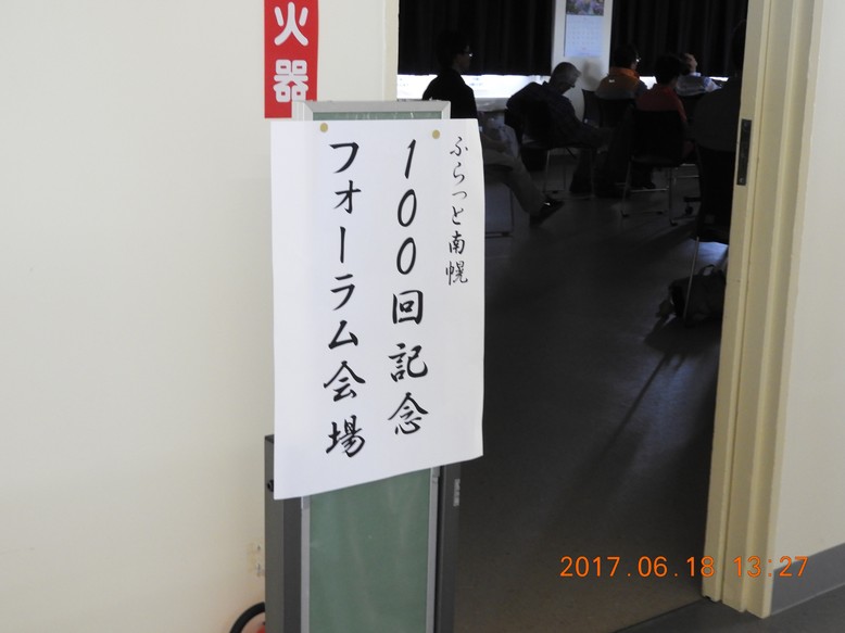 月例フットパス通算100回記念フォ−ラムが6月18日に開催されました。月例フットパスで60名を超える参加は初めてのことでした。多くの方々の協力があって続けてこれたと実感しております。スタッフ一同心から感謝申し上げます。