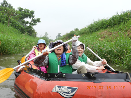 16日、第17回運河祭りいかだ下り&月例フットパスが行われました。雨、天候に恵まれない中でしたが26名の参加がありました。濡れることを覚悟の上での参加者達は、雨を味方につけて楽しんでいましたね!ジンギスカンも何のその、楽しく美味しく過ごしました。皆様、お疲れ様でした!