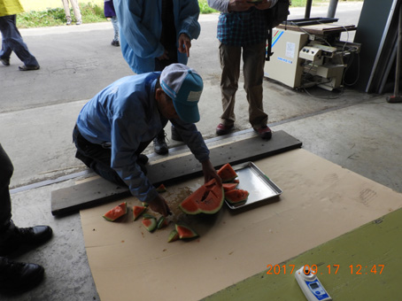 今回の月例フットパスは23名の参加でした。初めて来られた方が1/3位でしたか。そして、久々の再会の方々もいらして楽しい時間を過ごしましたね。プラムやかぼちゃ煮、スイカなど食べることが出来ました。ご馳走してくれた生産者の方々には本当に感謝です!!いっぱい秋野菜も仕入れましたので皆さんの食卓は賑わっていたことでしょう。