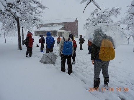 今回は悪天候にもかかわらず16名ご参加いただきましたことを大変うれしく思います。歩き始めて2キロ位でしたね。猛吹雪に見舞われました!ごみを拾うこともままならず木村隊長は[これより撤退!!笑」との声が聞こえまして、一行はビューローへと退散しましたね。本当にお疲れれ様でした。ビューローでの珈琲タイムでしばしの団らんの中で終了となりました。次回は、忘年会!
